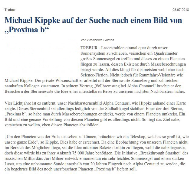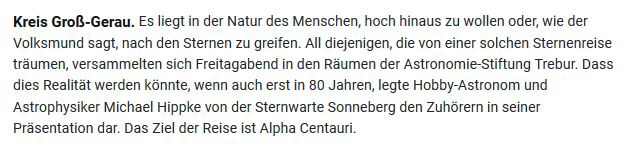 Beim Thema "Alpha Centauri" könnte man versucht sein zu denken, das sei alles "science fiction" oder ein Projekt für die ferne Zukunft.