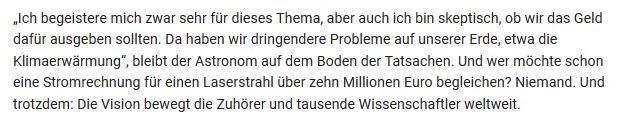 Planeten liefern kann, das aber erst ihre Kinder oder Enkelkinder zu sehen