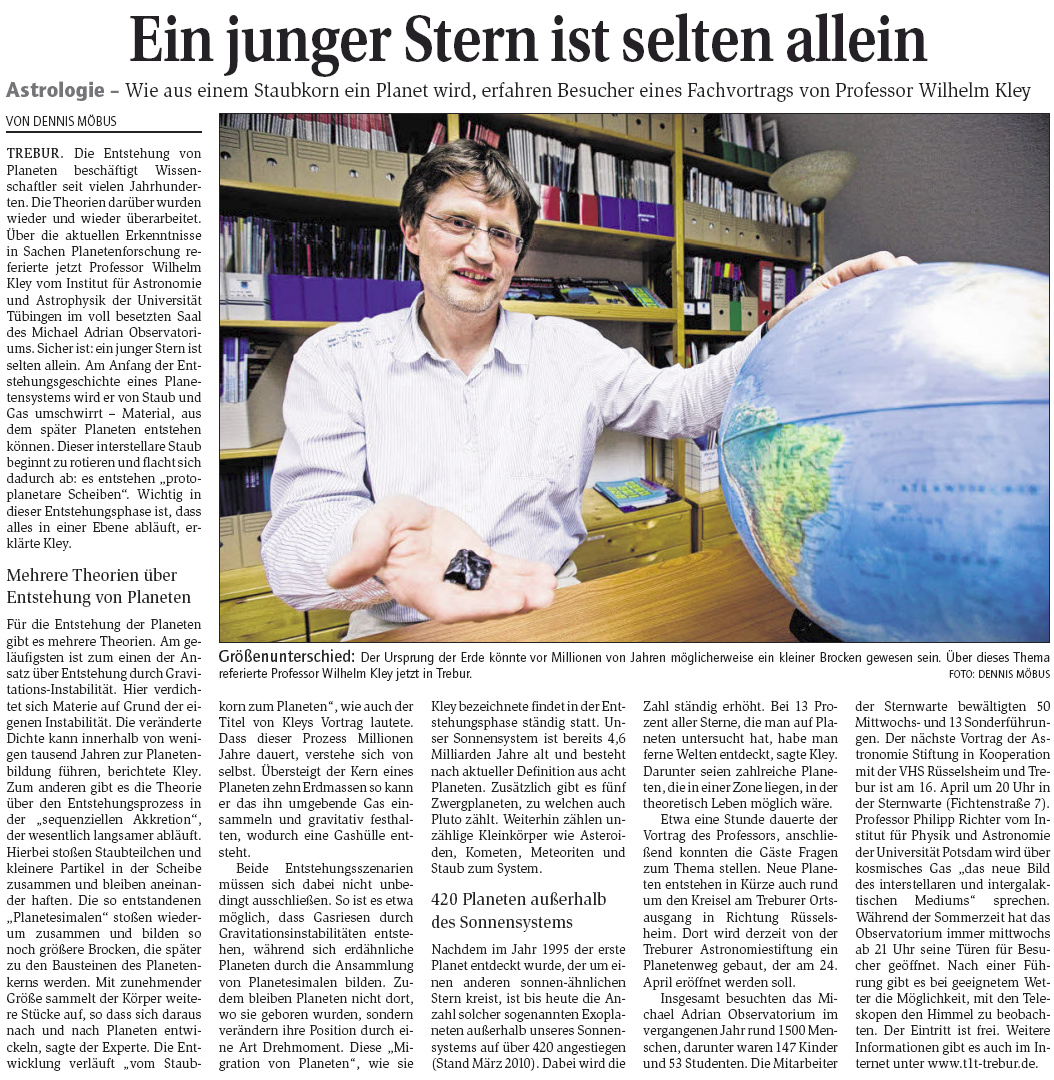 Prof. Dr. Wilhelm Kley ist seit 2000 Professor am Institut für Astronomie und Astrophysik