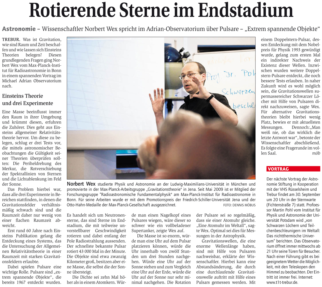 Bericht von Dennis Möbus in der Zeitung "Rüsselsheimer Echo" über den Vortrag:
